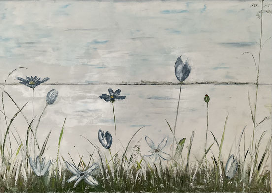 Meine Bilder sind Kompositionen aus Farben, Licht und Strukturen. Farben symbolisieren für mich Energie und positive Lebensgefühle. Auf der Leinwand wird experimentiert. Pigmente, Acrylfarben, Tuschen, Marmormehl, Champagnerkreide, Sand, Papier, Eisenplatten und vieles mehr fließen im bunten Materialmix in meine Bilder ein. Mich faszinieren nicht die geplanten, sondern die unvorhergesehenen Details, die durch das Arbeiten mit den verschiedenen Materialien entstehen. Oft spielt der Zufall bei der Bildentwicklung eine große Rolle, aber mehr noch der Mut, immer wieder Teile zu übermalen, Entwicklungen zuzulassen und sich experimentierfreudig neuen Möglichkeiten zu öffnen. Risse, Schleier und fließende Farben verbinden sich zu einem harmonischen Ganzen. Der Malprozess selbst ist für mich ebenso wichtig wie das fertige Bild. Nicht jeder Zeit zu wissen, wie die Materialien sich miteinander entwickeln, macht diese Art der Malerei für mich zu einem spannenden Erlebnis.